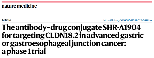 AG真人平台医药CLDN18.2 ADC创新药SHR-A1904治疗胃癌临床研究结果荣登Nature Medicine
